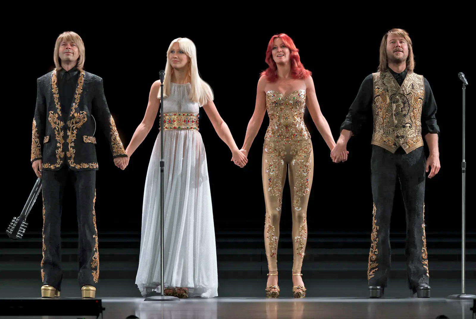After calling it quits in 1982, Abba fielded very lucrative offers for comeback tours but always turned them down, mostly due to logistics - Anni-Frid Lyngstad and Agnetha Fältskog are especially averse to touring. But what if they can do a run of shows without actually performing? That was the offer made by Simon Fuller, creator of Pop Idol and its US spin-off, American Idol. Instead of using hologram technology, the band worked with George Lucas' Industrial Light & Magic to create "Abba-tars" - digital versions of the band that move just like they do (or did - they're made to look like the band in 1979). To pull it off, the band spent four-and-a-half weeks performing in motion capture suits. That footage was digitally engineered and combined with motion capture from body doubles to do the various jumps and other stage moves the band members, all in their 70s, have aged out of. No existing venue is suitable for this production, so one is created: the Abba Arena in Queen Elizabeth Olympic Park, London. The result is a surprisingly lifelike representation that thrills fans with a hit-filled set. Two songs in the show - "I Still Have Faith in You" and "Don't Shut Me Down" - are part of their album Voyage, released six months earlier after they found a creative spark during preparation. The virtual costumes are designed by Dolce & Gabbana. One of the advantages of avatars is that costume changes aren't a problem, so there are 20, all perfectly fitted with no tailoring. Before the show opens - the first of 196 planned performances - Abba announced that they would no longer perform in real life or release more music. Photo: ABBA Voyage/Dolce & Gabbana